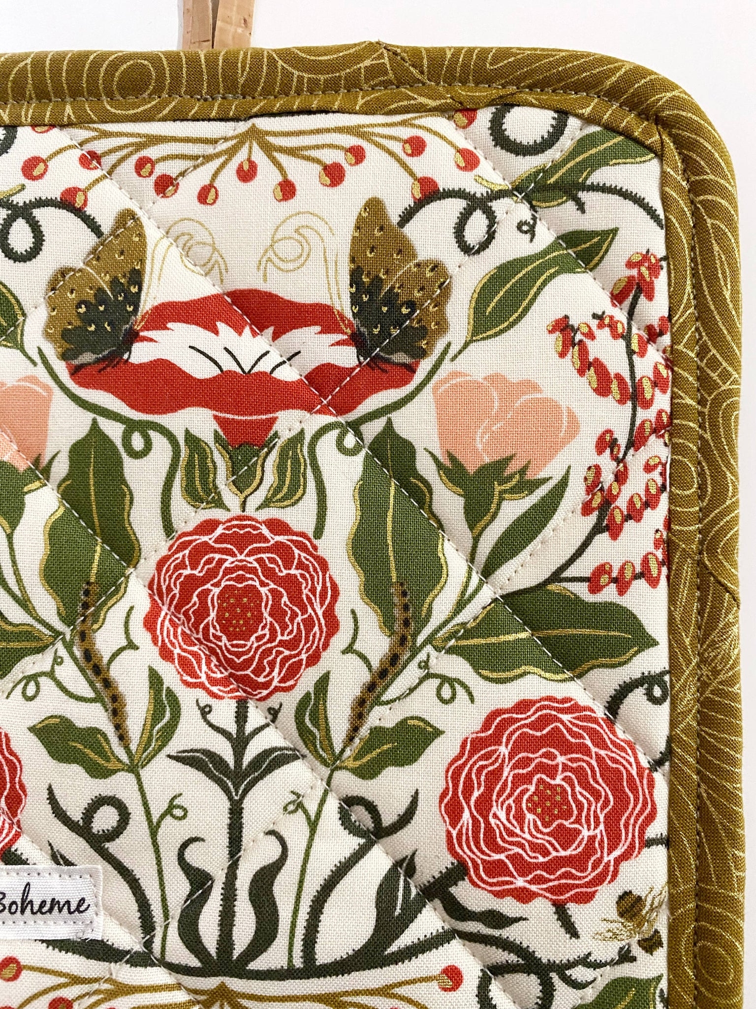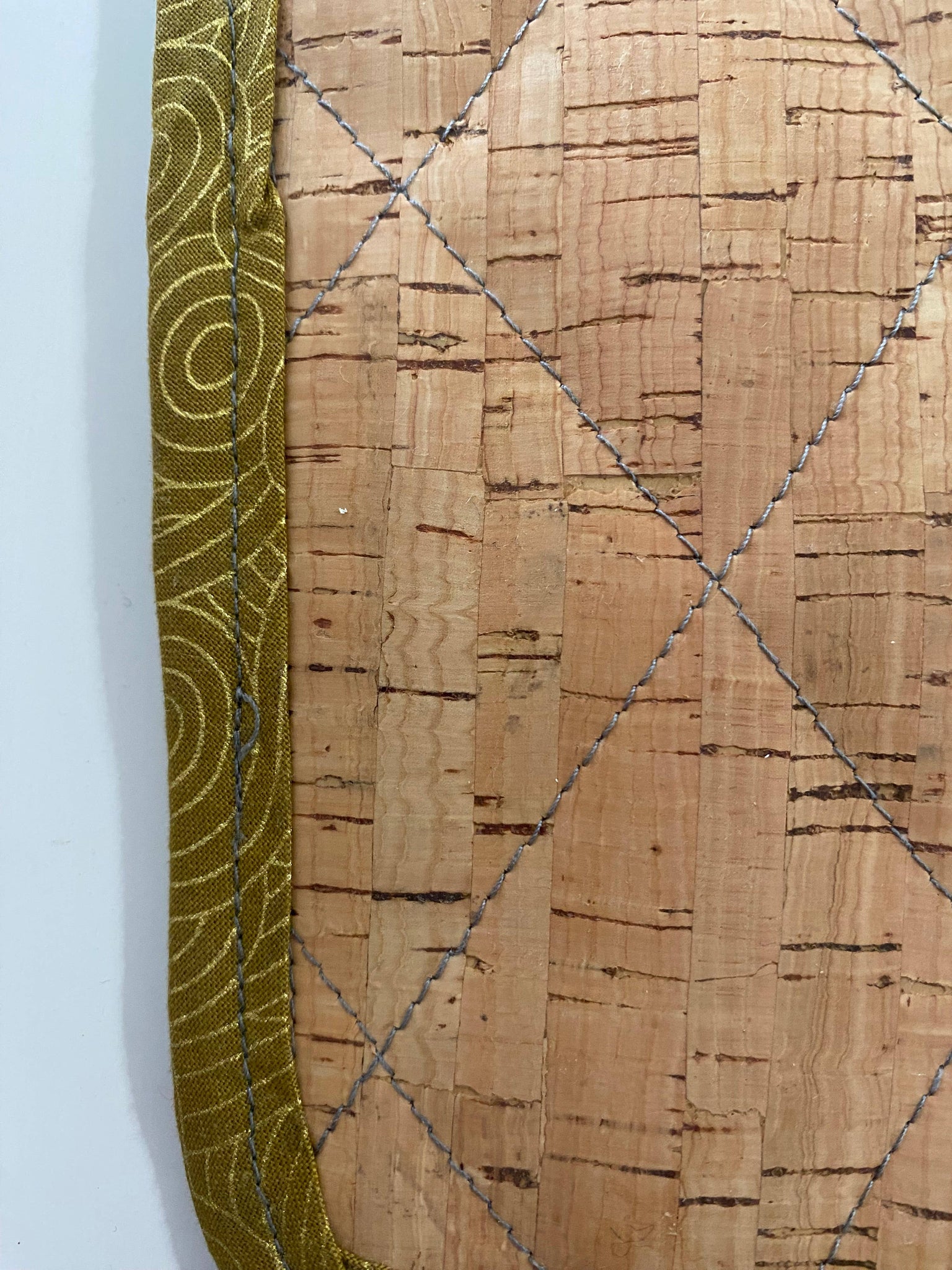 Cork may be a bit stiff at first but will soften over time like leather .Pot holder made from upholstery grade cork fabric and quilting cotton fabric.